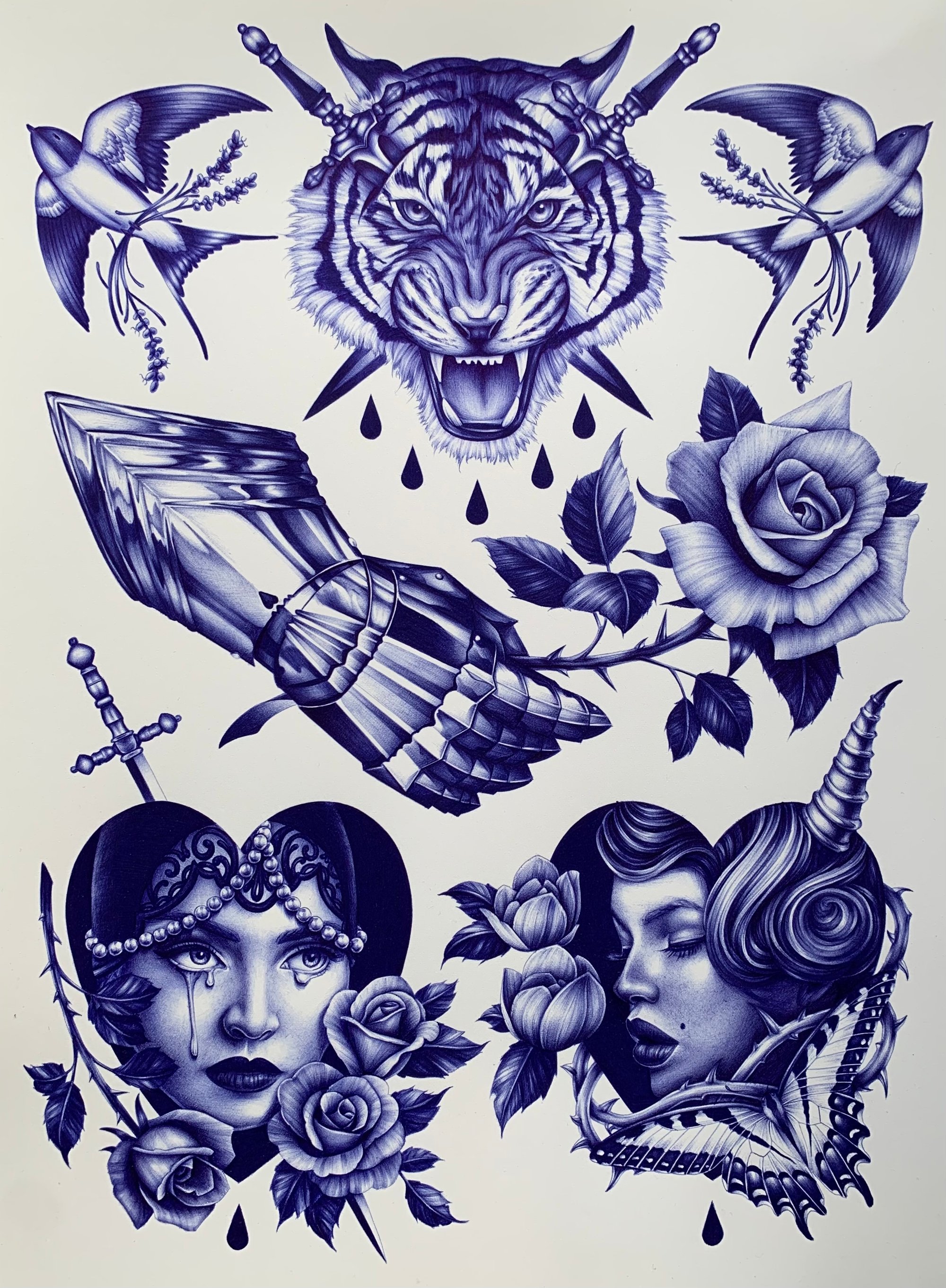 Ballpoint Flash Sheet 8 - ballpoint pen. Giclee archival print on A3 310gsm textured watercolour paper by Hahnemuhle. Individually signed