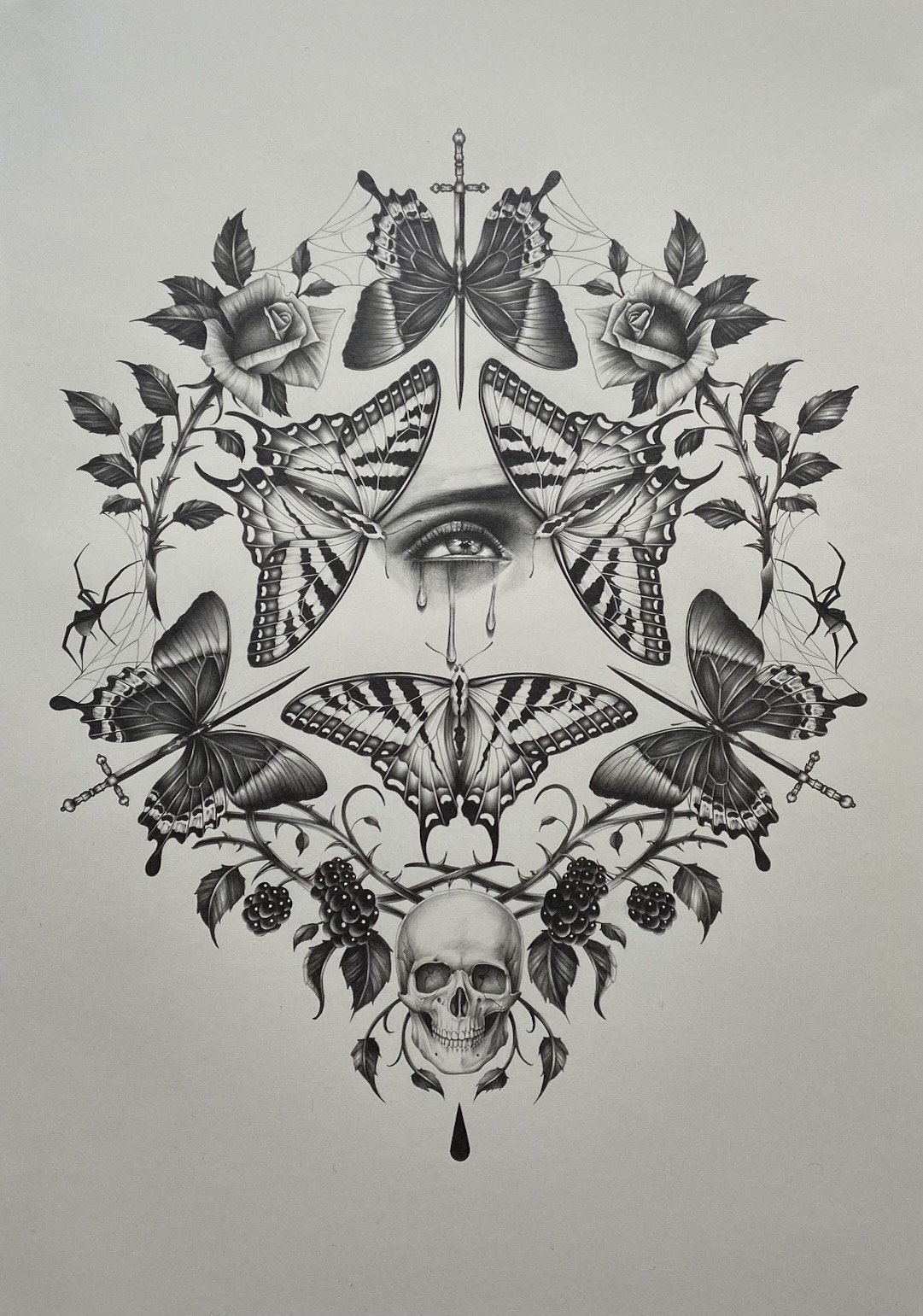 Giclee archival print on A3 310gsm textured watercolour paper by Hahnemule. Individually signed