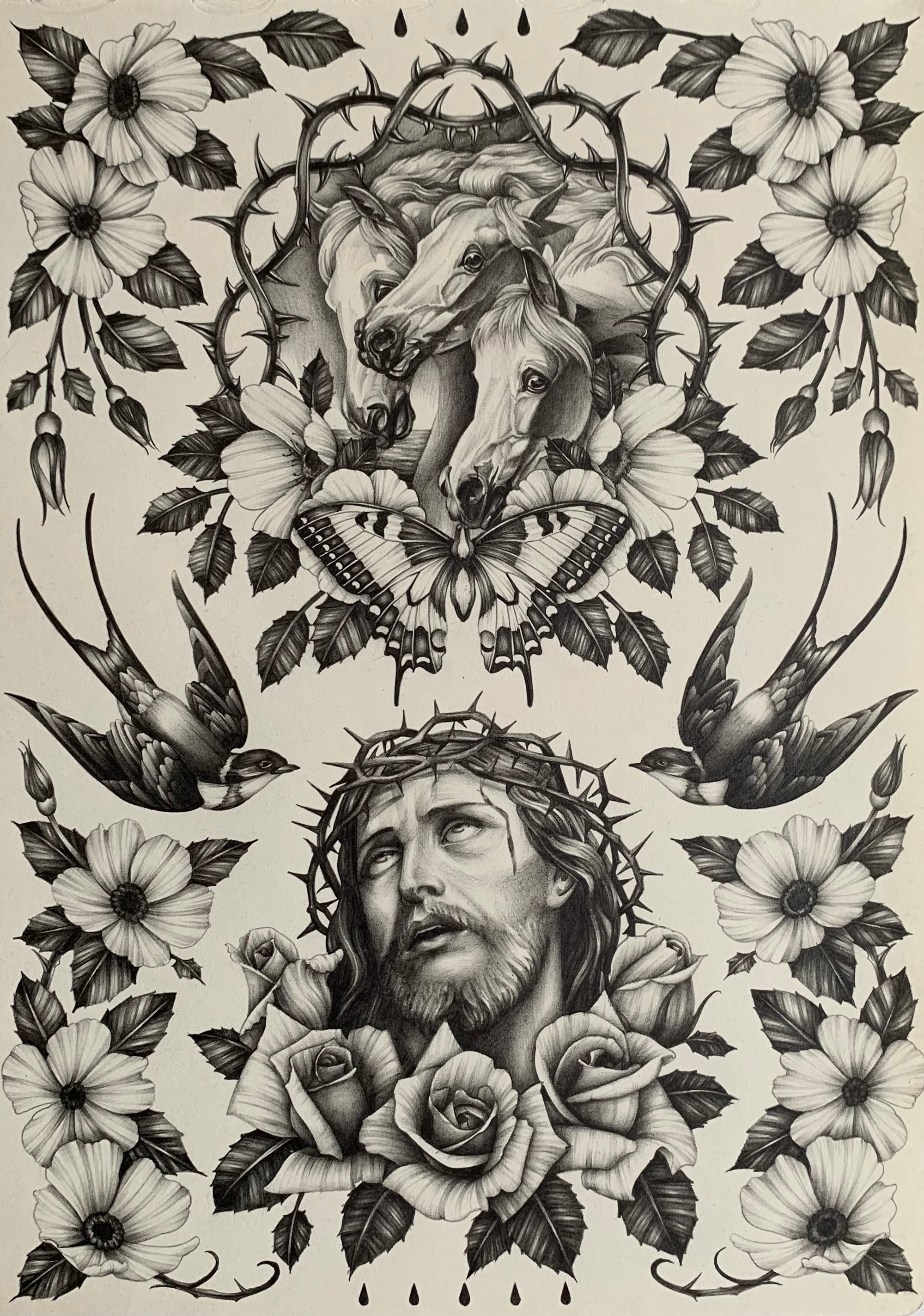 Graphite Pharaoh's Horses - prints are A3 in size and individually signed and printed on 310gsm textured watercolour by Hahnemule